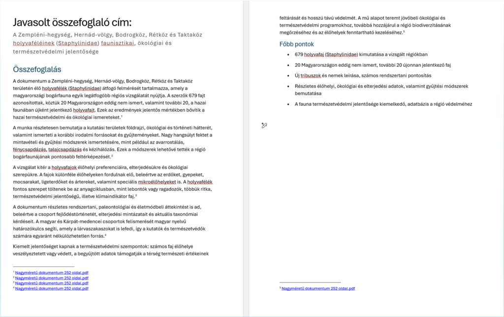 Az elkészült változat összefoglaló kevésbé látványos, de tartalmilag sokkal összeszedettebb, mélyebb a Chat változathoz képest, mindezt úgy, hogy megőrizte a promptban elvárt követelményeknek való megfelelést. A dokumentum precizitását jelzi, hogy lábjegyzetben elkészítette a hivatkozások gyűjteményét is.